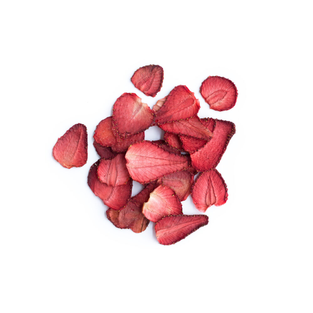 Tørret jordbær i skiver.